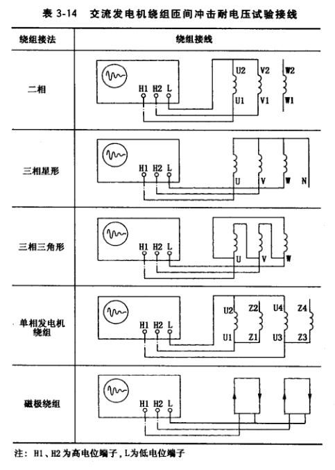 ①各種繞組檢測可按表3-14規定接線。