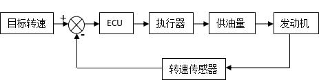 如圖3,操作人員根據工作意圖,設定相應的開關及電位器狀態,從而設定電調ECU當前需要讓系統工作的目標轉速。ECU通過轉速傳感器獲取轉速并與當前目標轉速值比較,并與當前執行器允許的最大允許位置比較,從而確定執行器此時應該所在的位置并驅動其到達。執行器位置對應的是油泵的供油量,其變化直接影響的是油泵的供油量,而供油量的變化將決定發動機轉速狀態,當前這一轉速又通過轉速傳感器反饋給ECU做及時控制的判斷依據。