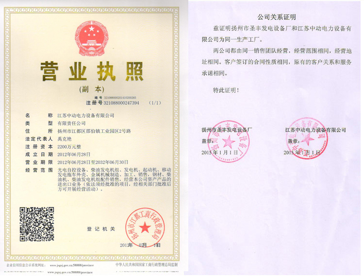 供應(yīng) > 發(fā)電機(jī) > 證書
